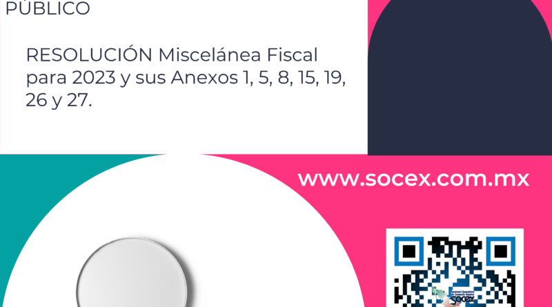 Read MoreSECRETARÍA DE HACIENDA Y CRÉDITO PÚBLICO RESOLUCIÓN Miscelánea Fiscal para 2023 y sus Anexos 1, 5, 8, 15, 19, 26