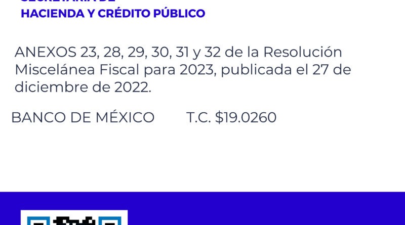 ANEXOS 23, 28, 29, 30, 31 y 32 de la Resolución Miscelánea Fiscal para 2023, publicada el 27 de diciembre de 2022.